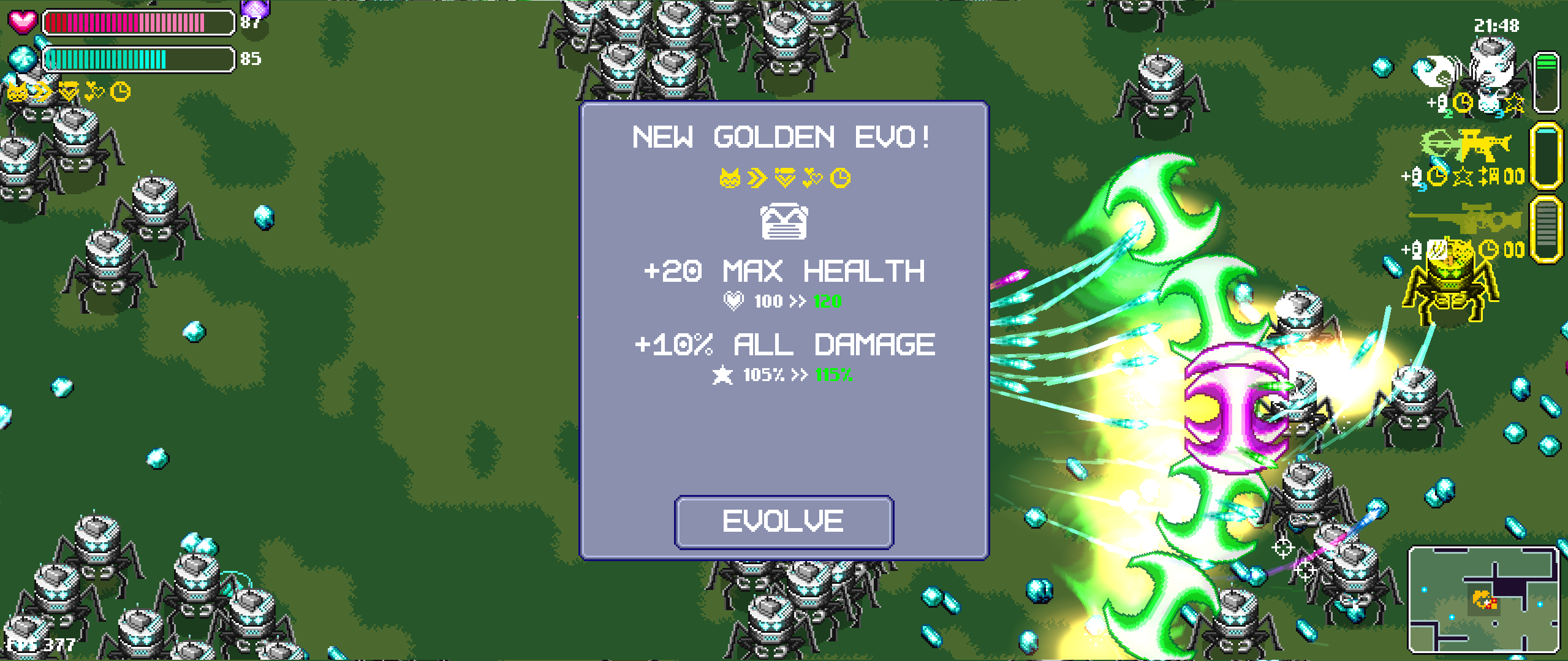 - Deep Mod & Evolution System: Stack mods and customize your firepower on the fly. Combine upgrades to trigger powerful weapon evolutions, unlocking extreme synergies for your Gatling, Sniper, Laser Xbow, Moon Beam, and more.